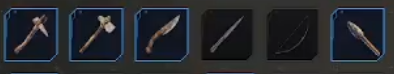 행성에 도착하면 우선 맨손으로 파밍을 하고 곡괭이, 도끼, 칼, 활, 화살을 우선적으로 만들어 줍니다.