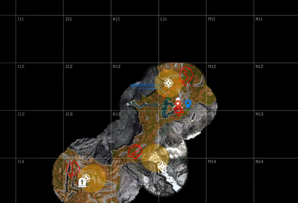 ▲미션의 위치 입니다. [★]모양은 우주선(스폰위치)입니다.