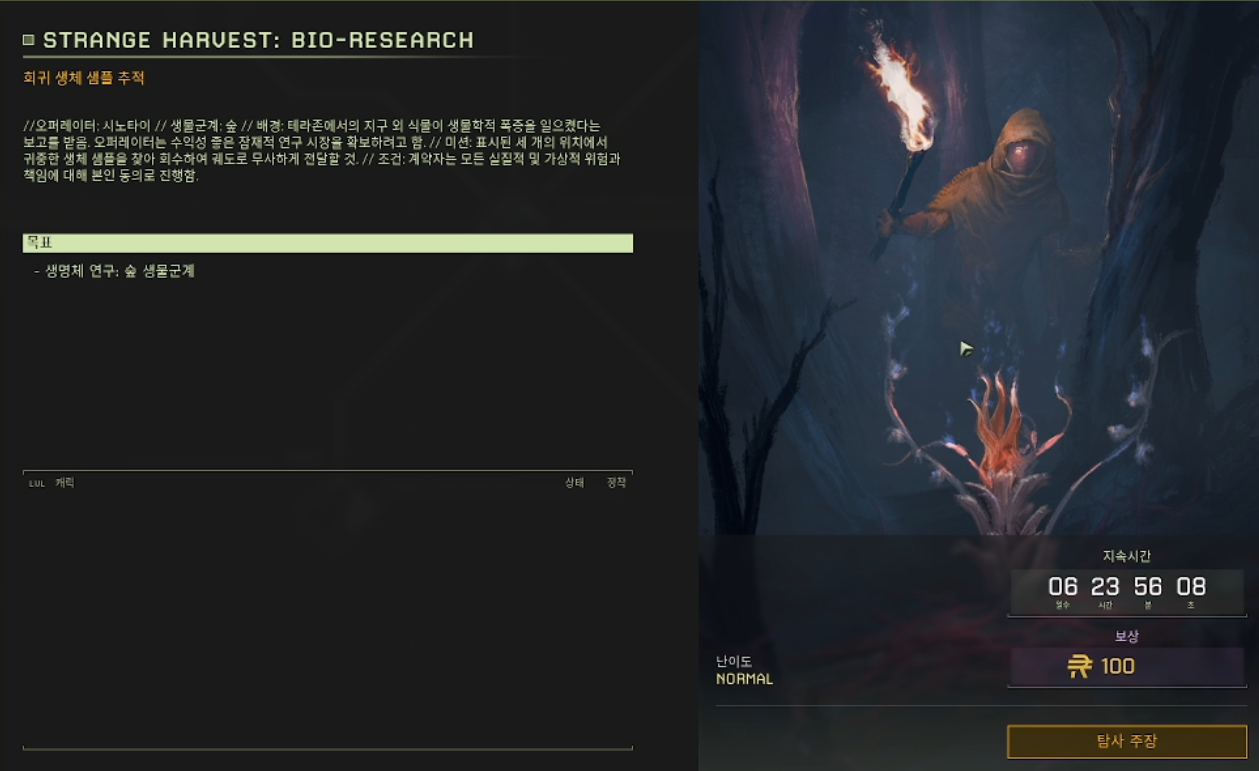 오늘은 이카루스 STRANGE HARVEST : BIO-RESEARCH(희귀 생체 샘플 추적) 미션공략을 해보도록 하겠습니다.