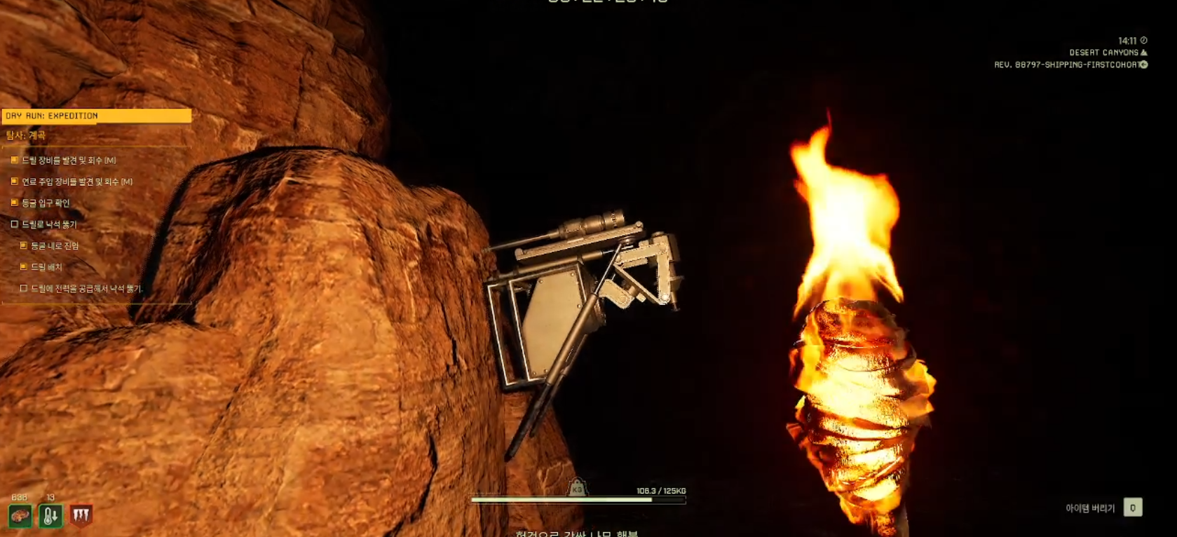 사막지형으로 가기위한 길을 뚫는게 미션의 목적인데요. 수색, 설치를 해야하는 미션이니 참고하시면 좋습니다.