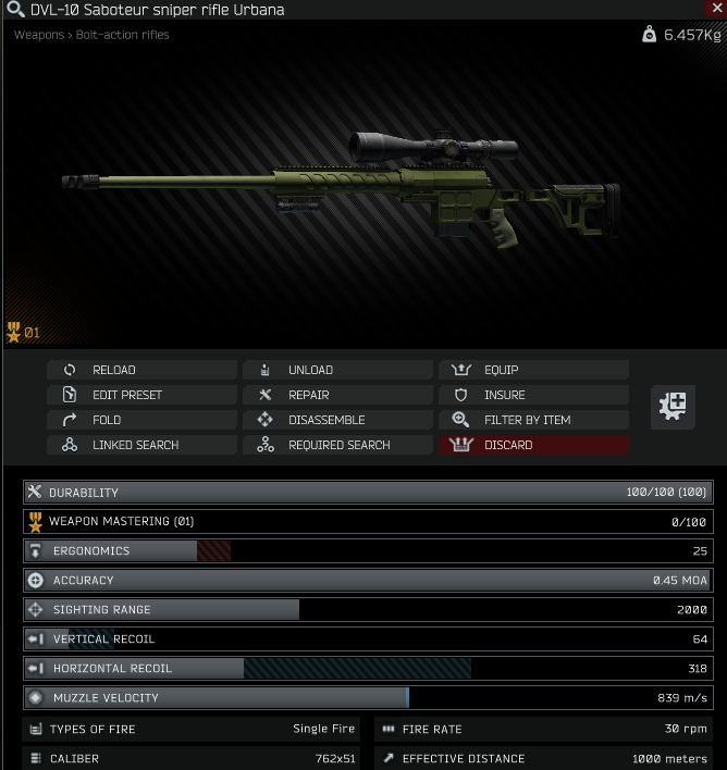 | 에르고 23이상 수직, 수평 반동 합 400이하 총 무게 6.6kg 시야거리 2000 레이저 장착 (주의 : 탄창이 장착되어있으면 안됩니다.) |