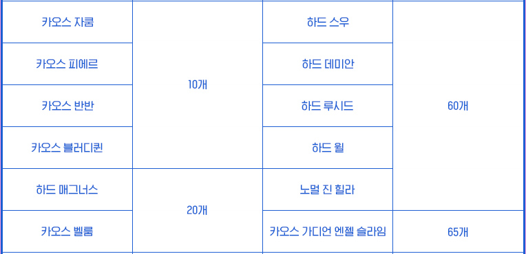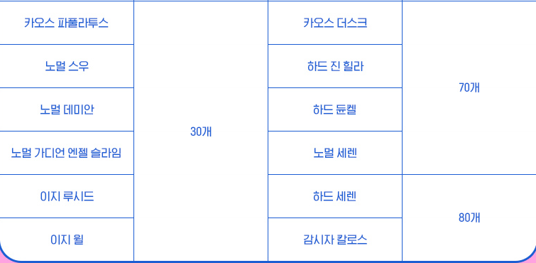 (처치한 보스에 따라 받을 수 있는 코인의 개수가 다릅니다. 아래 표를 참고해주세요.)