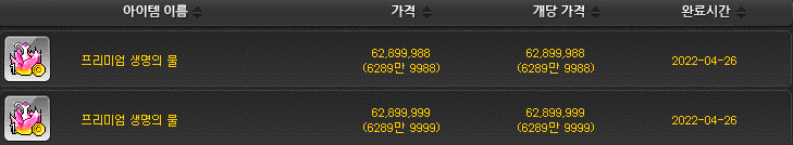 프리미엄 생명의 물 (루나서버 기준) 약 6300만원