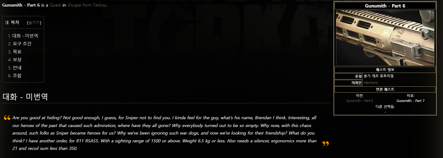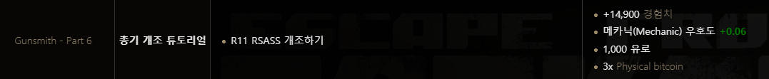 | 건스미스 Part 6 | 필요총기 (R11 RSASS) | 보상 |
