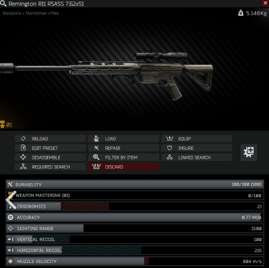 | 에르고 21이상 수직, 수평반동 합 350이하 무게 6.5kg 이하 소음기 장착 시야거리 1500이상 탄창은 제거 후 제출 |