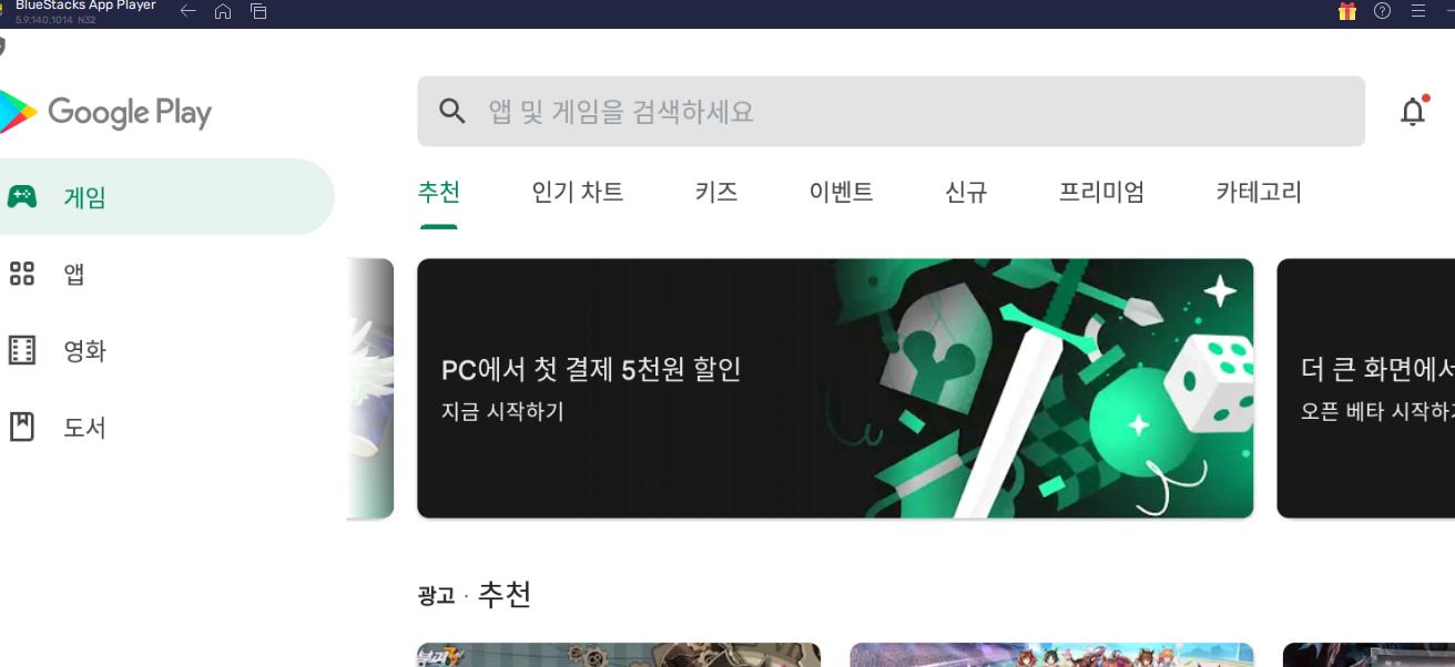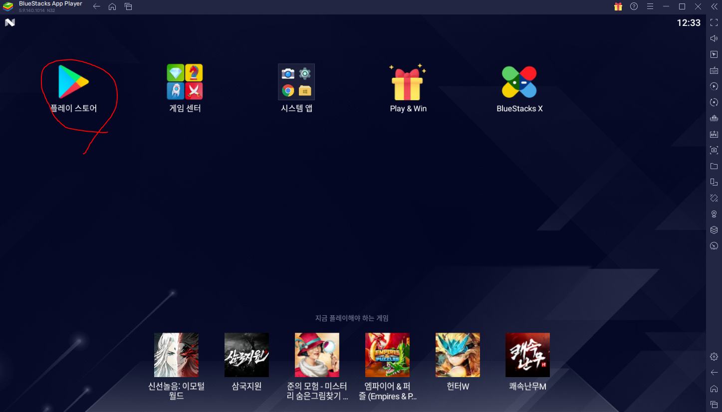 5. 로그인이 완료되면 구글 플레이에서 원하는 게임을 다운받아 사용하시면 됩니다.