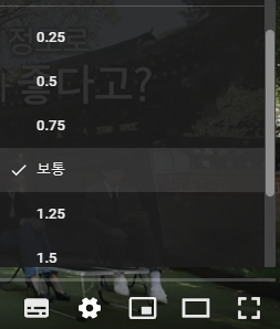 빠르게는 Shift + . (마침표 버튼)을 누르면 0.25배씩 빨라집니다.