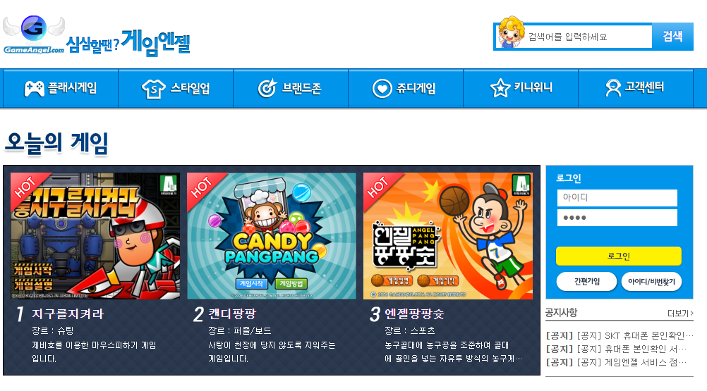 게임엔젤은 유명한 사이트인데요. 옛날 야후꾸러기 같은 플랫폼시절의 게임들을 다량 보류하고 있습니다.