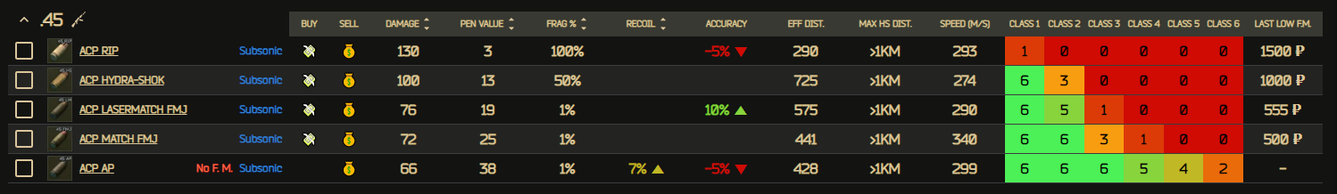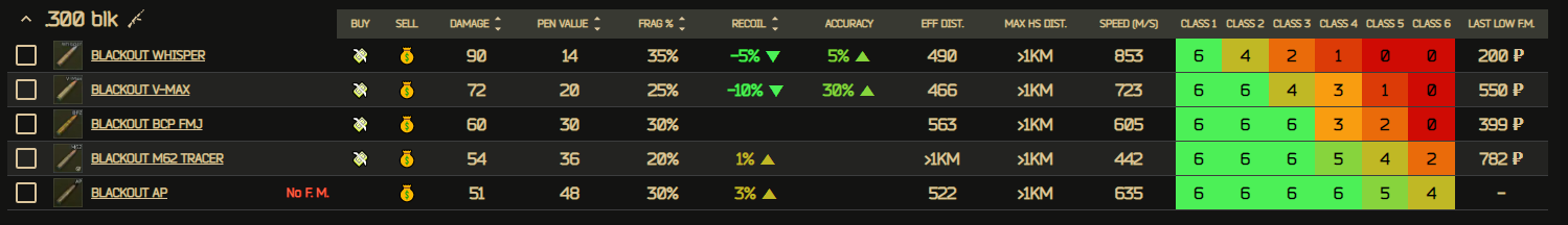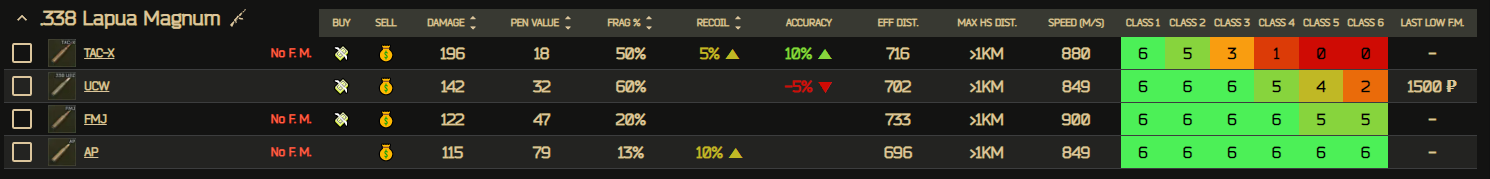 ( Ctrl+F를 눌러 원하시는 탄약을 검색하시면 쉽게 찾을 수 있습니다.)