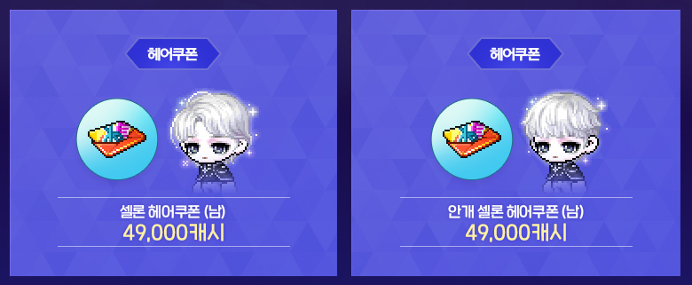 헤어쿠폰은 남자캐릭터 2개 여자캐릭터 2개 총 4개입니다.