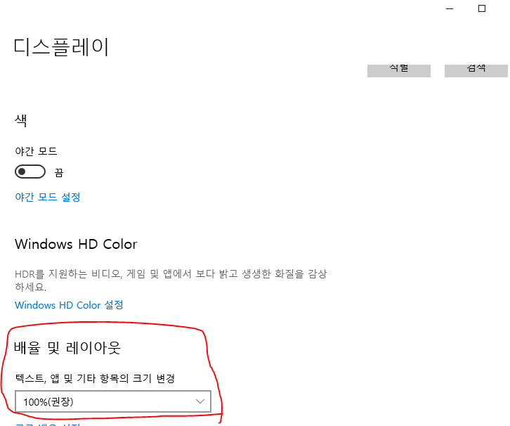 1. 바탕화면 마우스 우클릭 -> 디스플레이 설정 -> 텍스트, 앱 및 기타 항목의 크기변경(125% -> 100%)