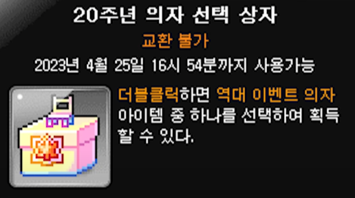 오늘은 20주년 의자 선택상자에 리스트에 대해 알려드리도록 하겠습니다.