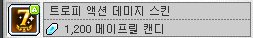20주년 캔디샵에서 구매가능한 데미지스킨은 비눗방울 액션 데미지스킨과 트로피 액션 데미지스킨 총 2가지 종류가 있습니다.
