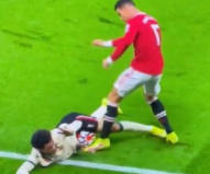 바로 이때 호날두 선수가 넘어져있는 데브라위너 선수에게 한번 더 태클을 하는